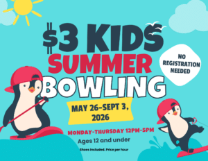 $9 bowling and half off games, bring your NM IDs and enjoy refreshments while you’re at it!